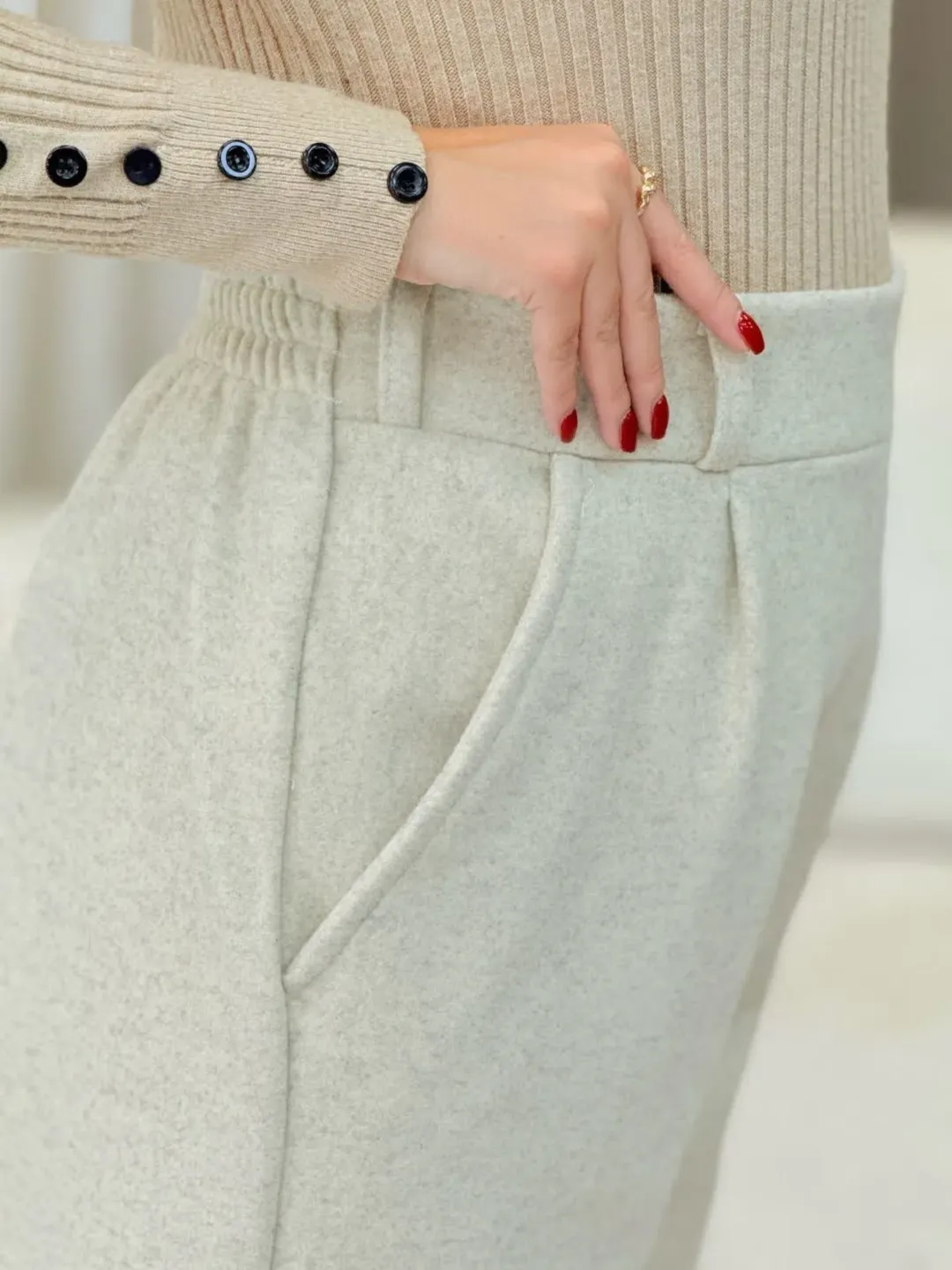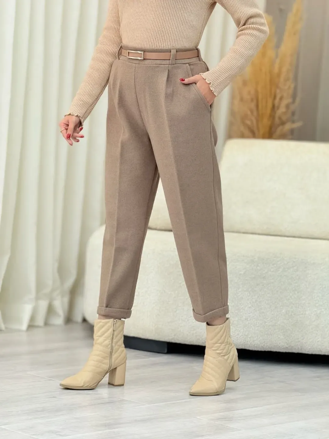 شلوار فوتر گرم پارچه بالا دارای سایزبندی در رنگهای زغالی ، قهوهای تیره ، کرم ، طوسی.